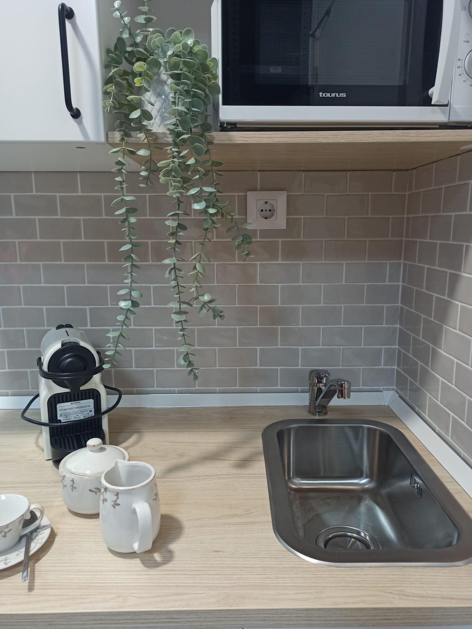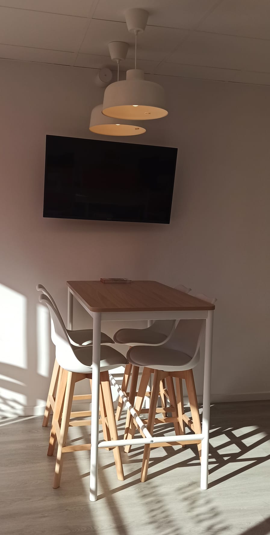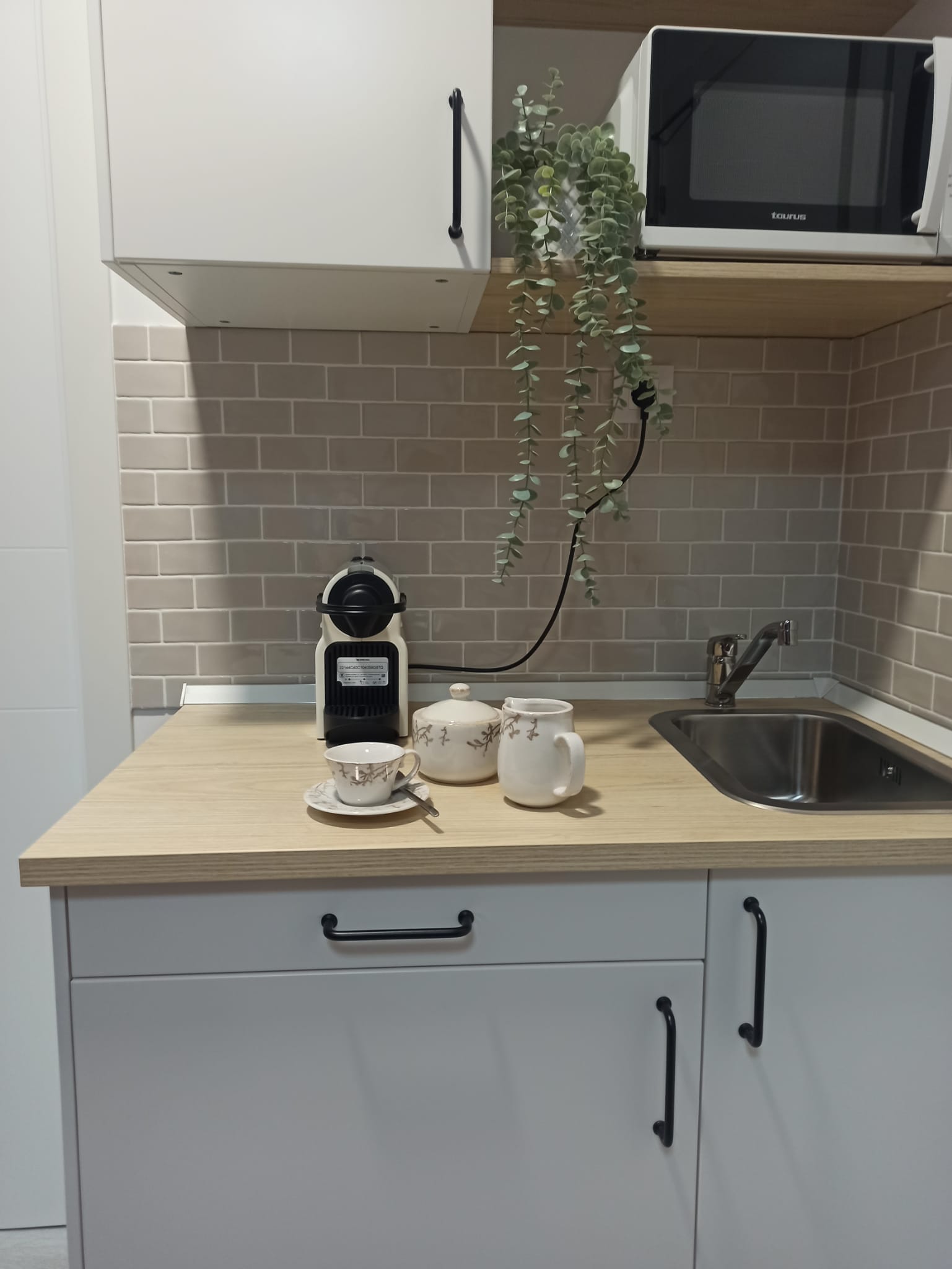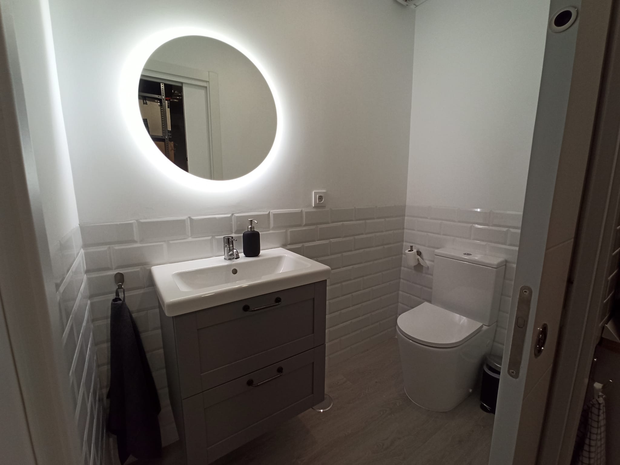 Realizamos una nueva distribución consiguiendo una gran capacidad de almacenaje interior y colocamos dos grandes armarios, para completar esa necesidad. Renovamos toda la instalación eléctrica para poder apoyar el día a día de las necesidades de la empresa, reducimos y reposicionamos el aseo, jugando con revestimientos sencillos. Colocamos una pequeña cocina con una zona de lavado, nevera, microondas, cafetera y zona de almacenaje. Sencilla, pero perfecta para el uso diario.
