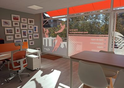 Se cambian revestimientos, sanean paredes y techos y se coloca nueva iluminación. Distribuimos nuevo mobiliario sencillo con los colores corporativos y creamos una zona de “exposición” con fotos de las diferentes actividades que realizan para darle un toque más personal. Rematamos el local con un proyecto de fachada completo con rotulación y toldo, proporcionándole un cambio completo y dejando una oficina, luminosa, joven y con todas las necesidades cubiertas.