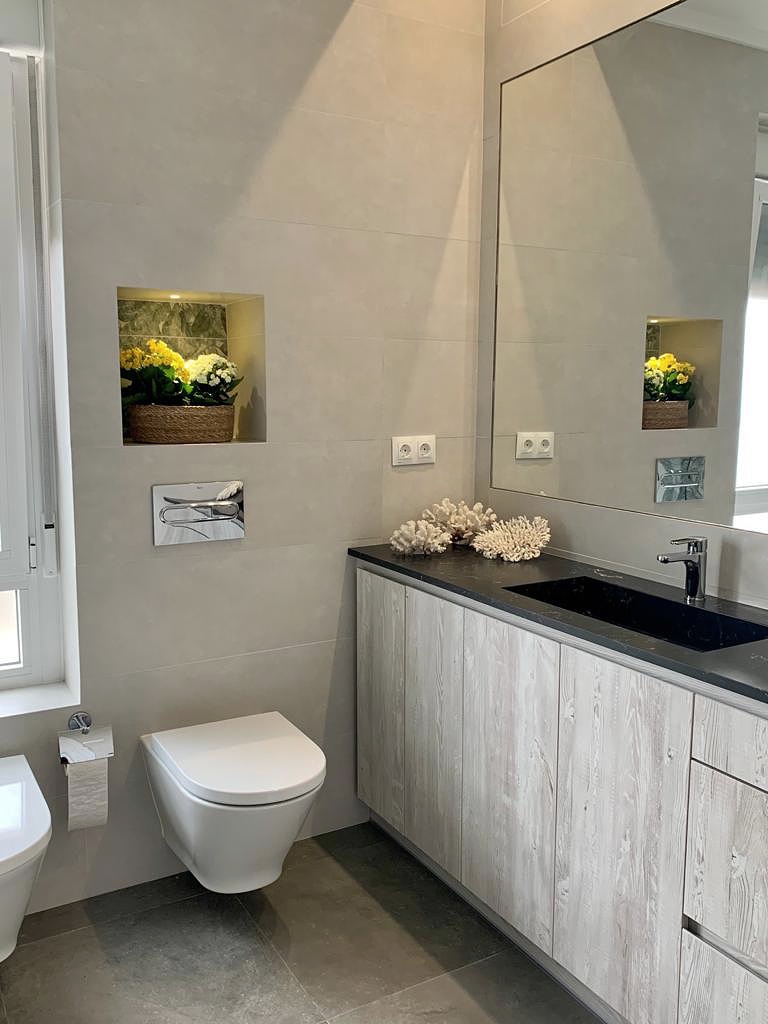 baño cuyos materiales habían quedado pasados de moda y que además necesitaba una actualización general de fontanería