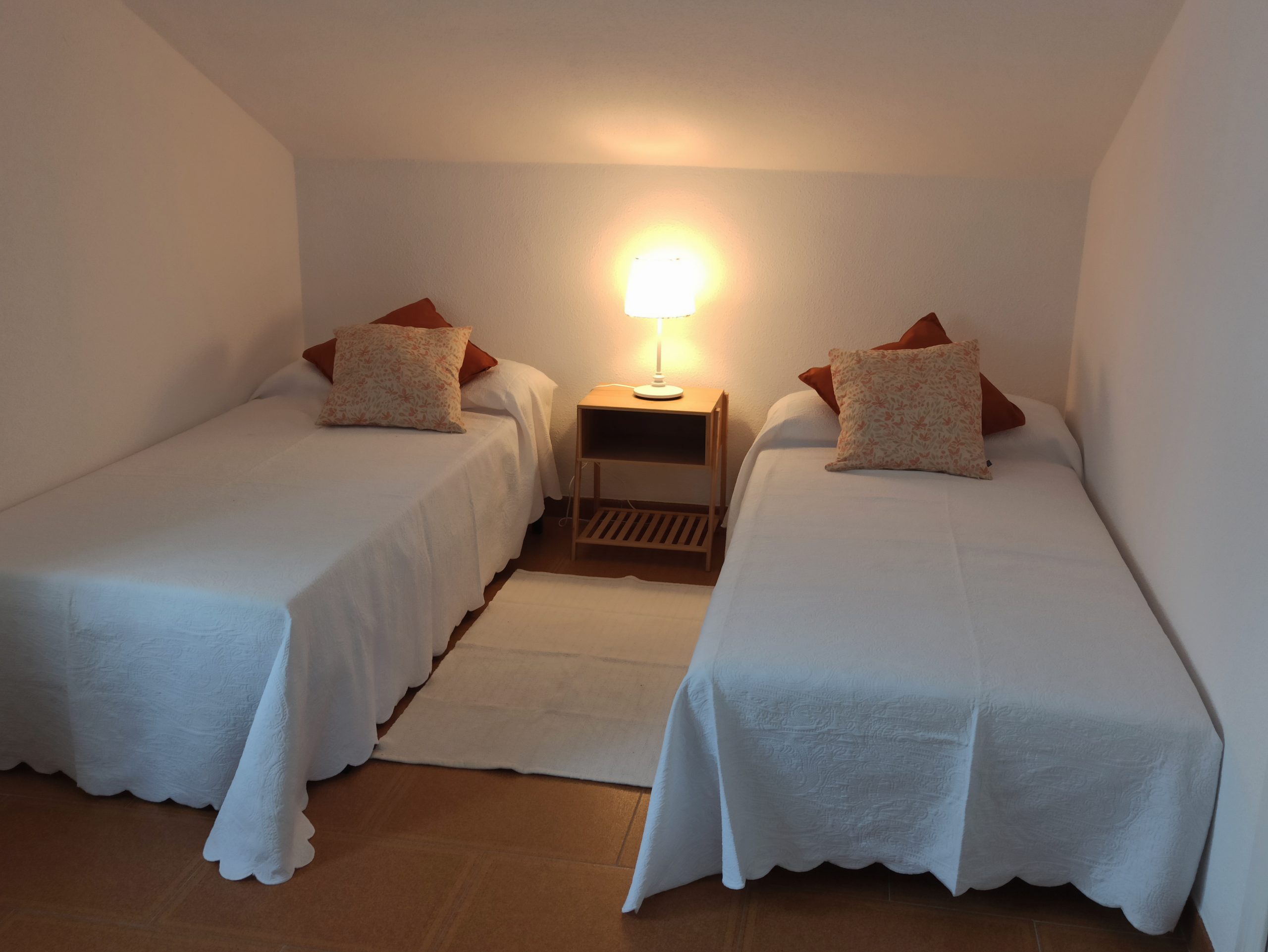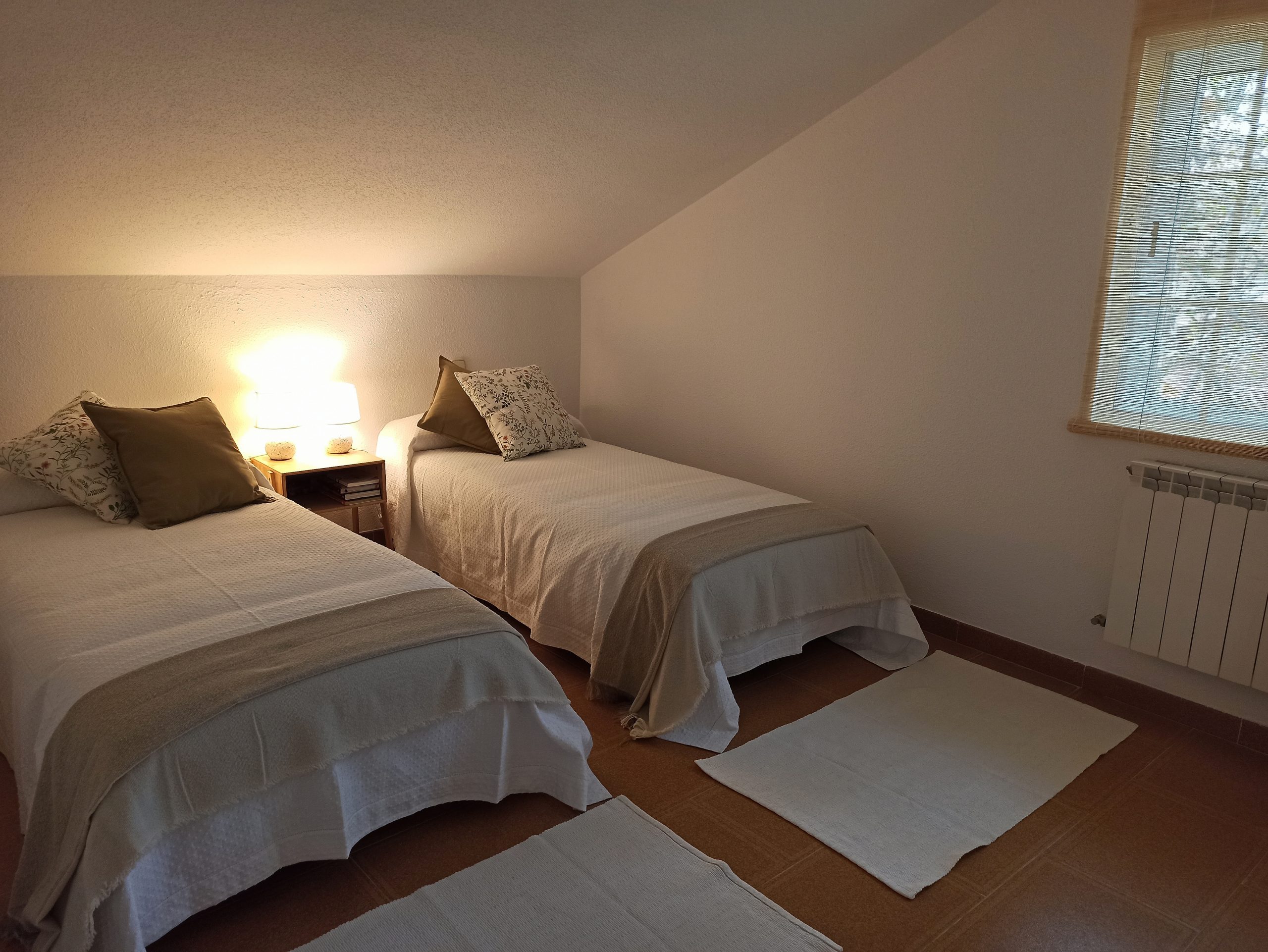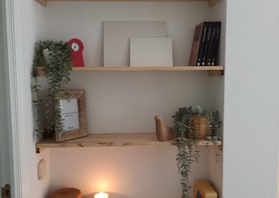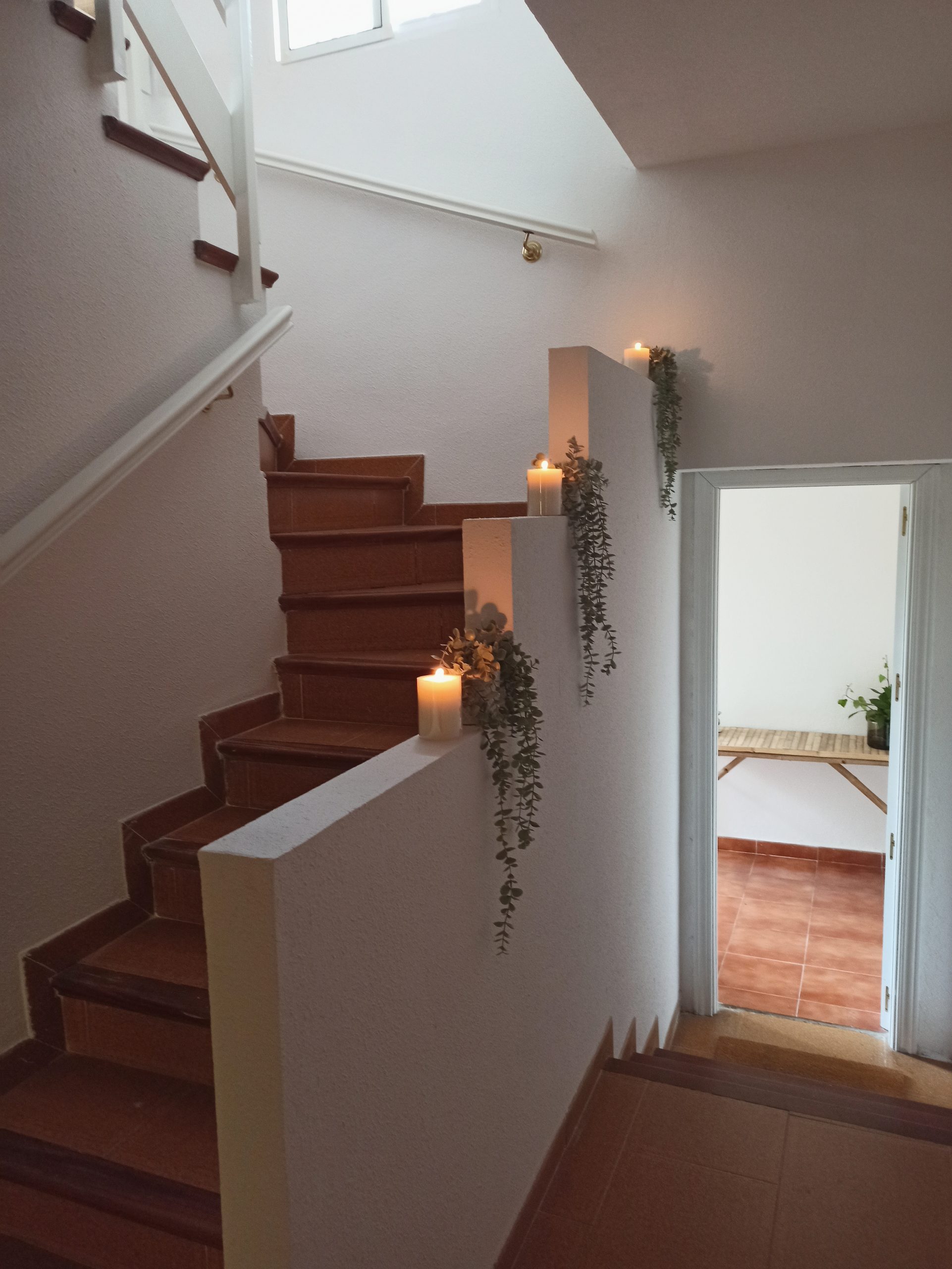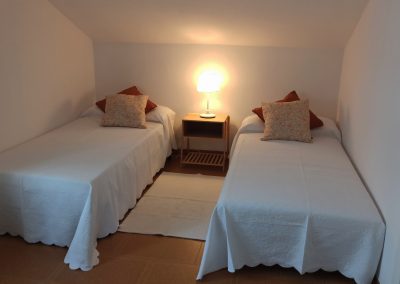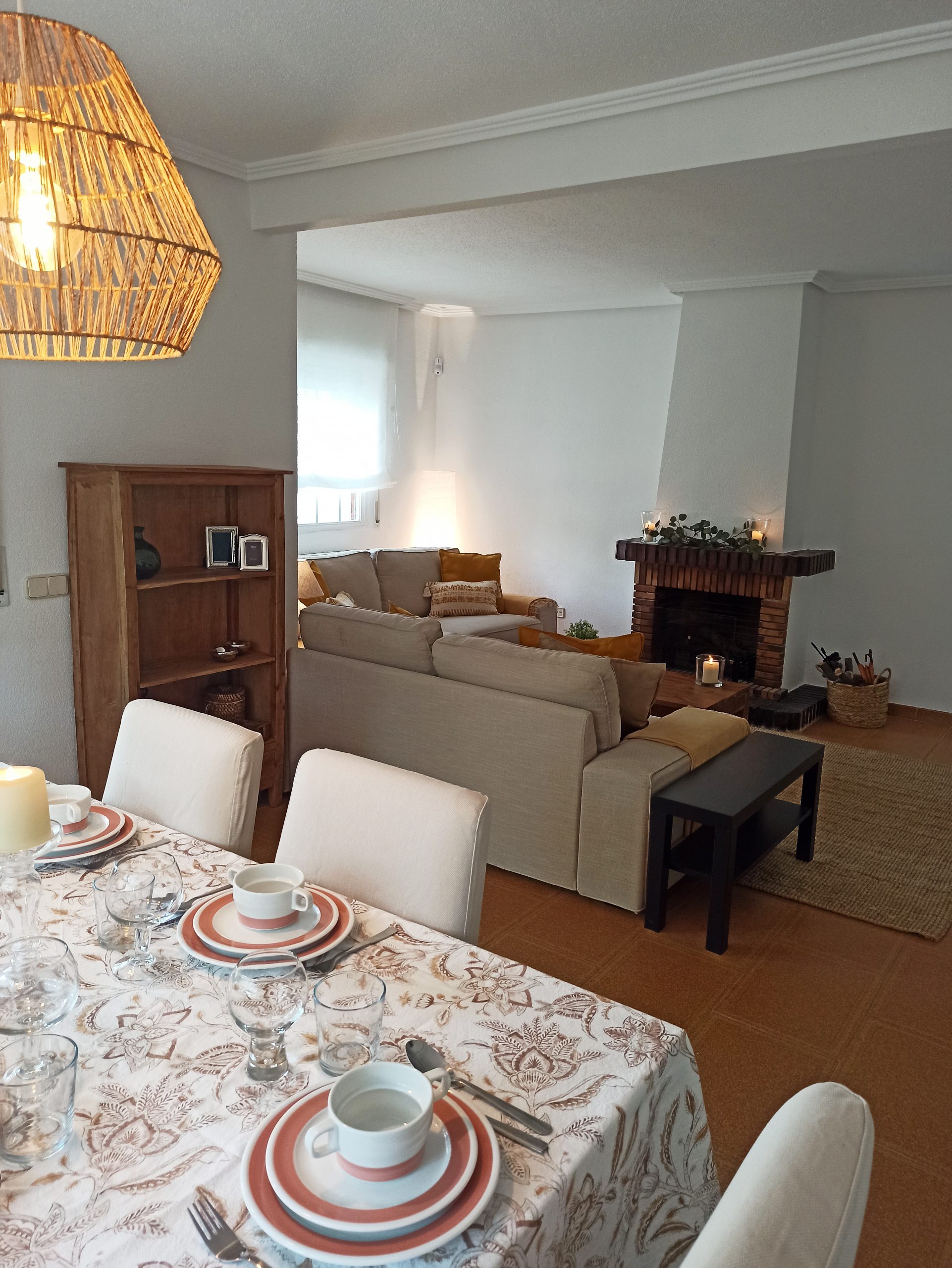 En cuanto al capítulo de decoración, y acorde al gusto de los clientes, se realiza un proyecto sencillo, con muebles de madera natural, y confecciones suaves (una diferente por cada estancia). Colchas blancas portuguesas en los dormitorios y accesorios de fibra y madera natural. Iluminación cálida y envolvente que hacen de la casa el perfecto refugio para fines de semana y vacaciones…