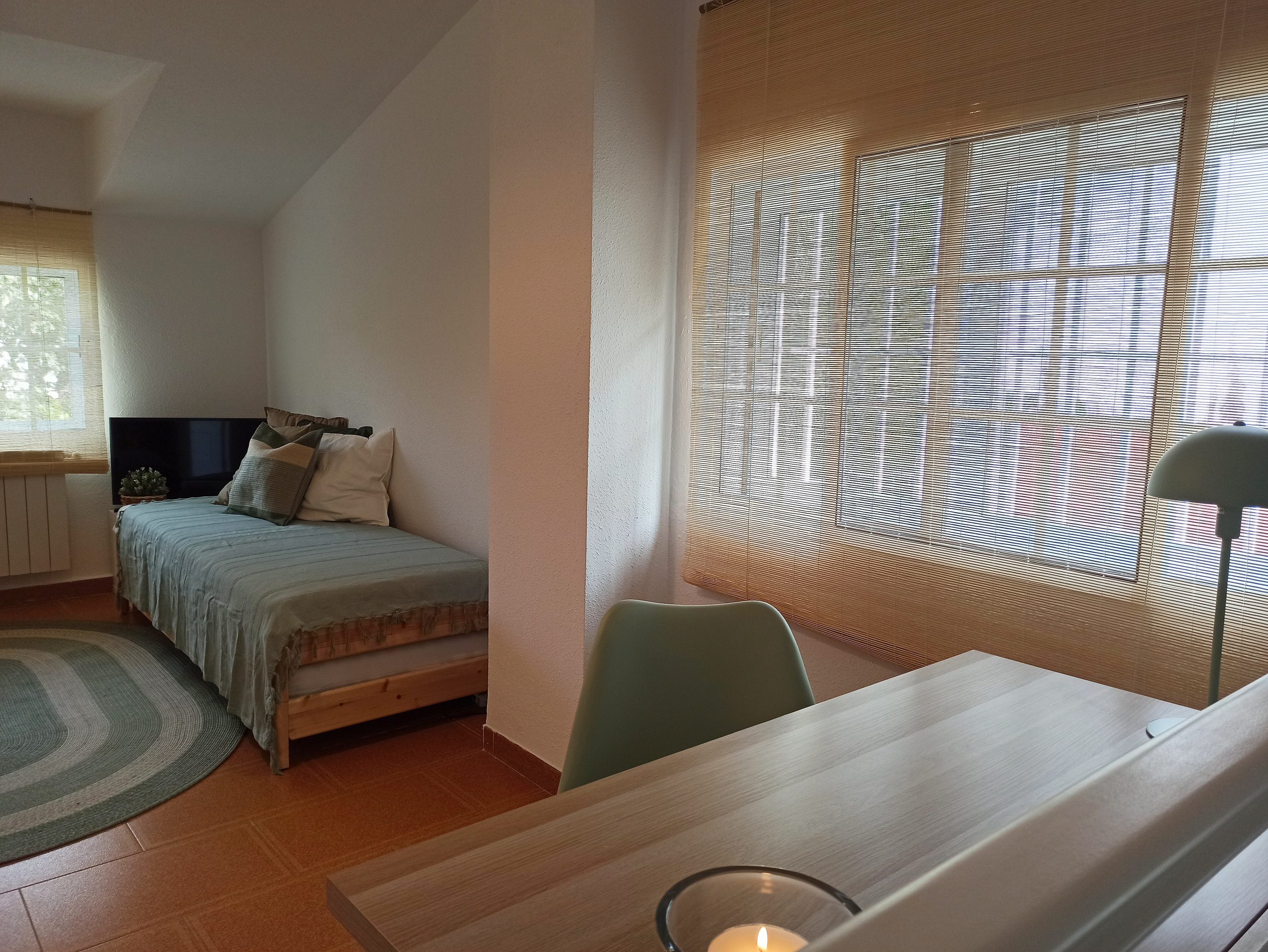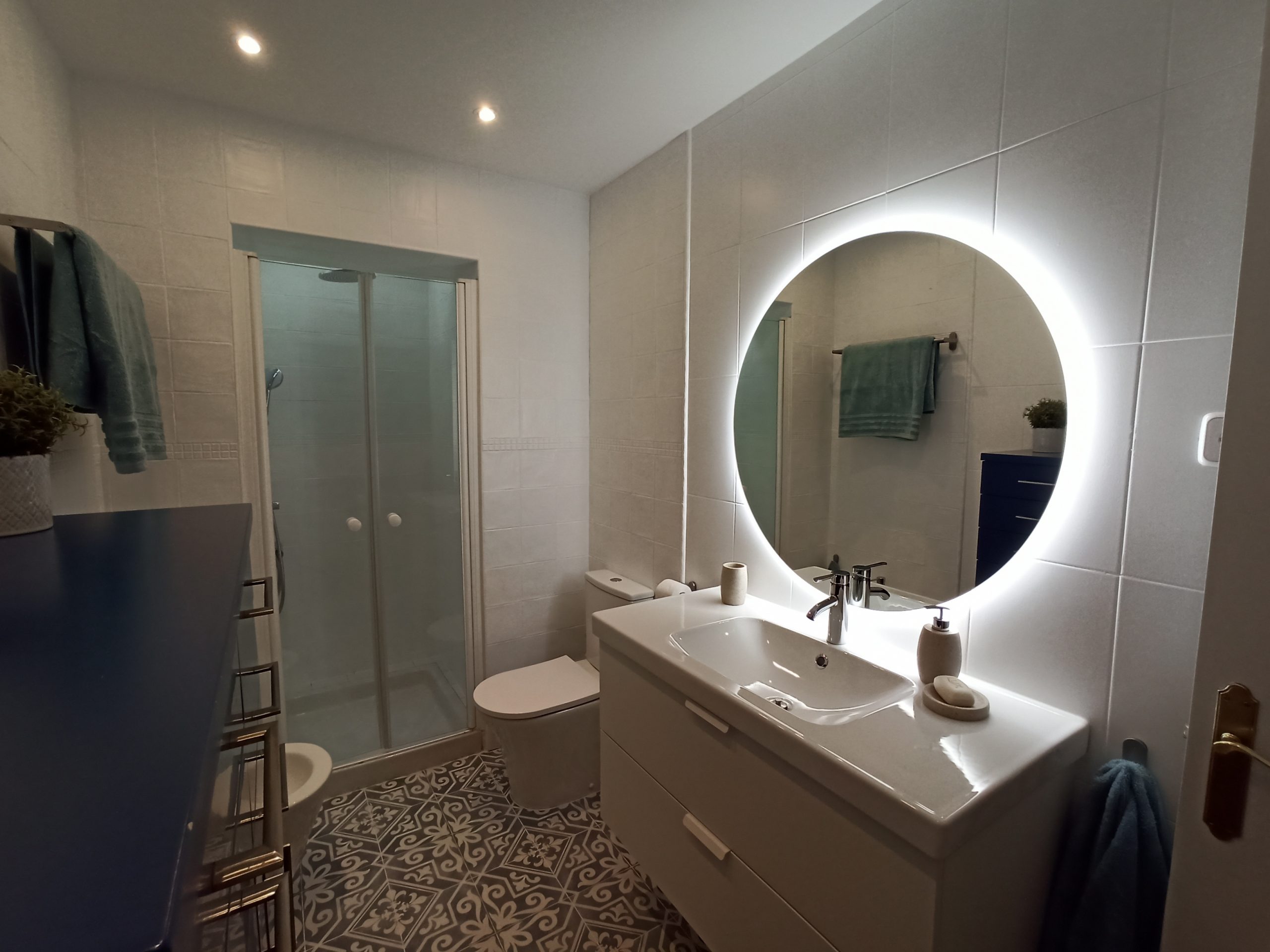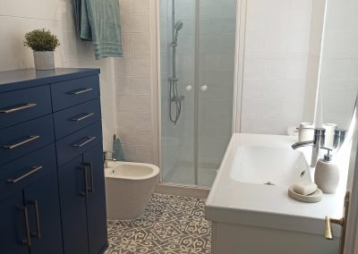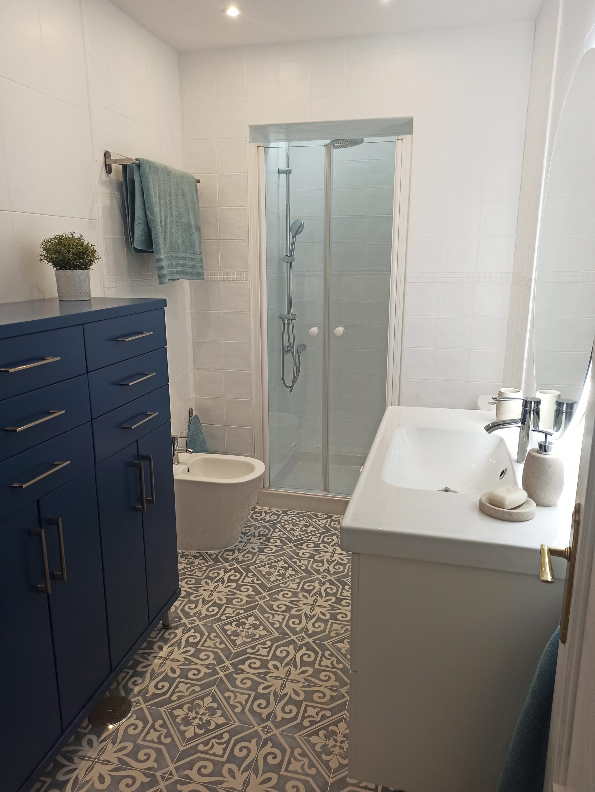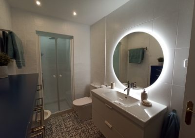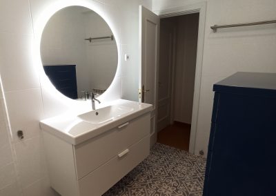 Comenzamos el proyecto dividiendo una gran habitación de juegos en el piso superior para convertir parte del espacio en la habitación principal, con salida directa a una bonita terraza con vistas a la Sierra de Guadarrama. Realizamos un proyecto de cocina nuevo cambiando todos los muebles, con colores claros. Cambiamos la imagen completa del baño del piso inferior, con pintura especial de azulejos, nueva iluminación, nuevo suelo y nuevo mobiliario y accesorios. El resultado es sorprendente, y fresco, dándole un aspecto totalmente renovado y actual.